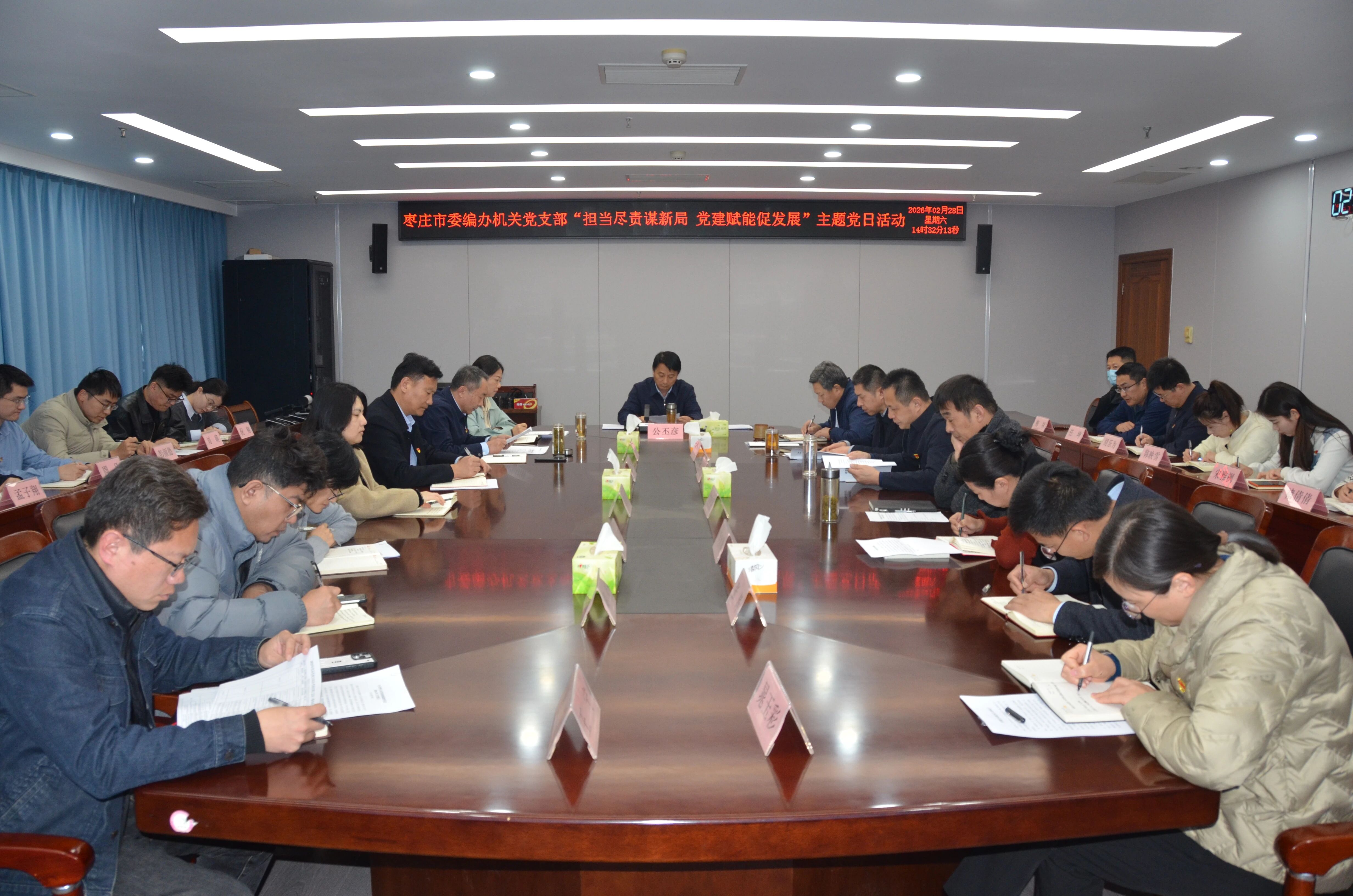 为深入贯彻落实党的二十届四中全会精神,全面落实全省干事创业担当尽责确保“十五五”开好局工作会议和全市“服务企业年”动员大会部署要求,2月28日,市委编办机关党支部开展“担当尽责谋新局 党建赋能促发展”主题党日活动,市委编办全体党员干部参加。